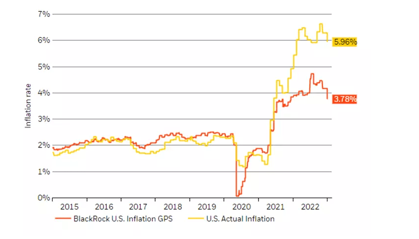 Source: Refinitiv DataStream, chart by the BlackRock Investment Institute, December 2022. The BlackRock Inflation GPS shows where core (excluding food and energy) consumer price inflation may stand in six months’ time. The GPS models the relationship between rates of core inflation and a broad set of economic indicators including measures of slack, inflation expectations, and other inflation related data such as business surveys and wages. It also incorporates a proprietary Systematic Active Equity signal measured through text mining of commentary on inflation.